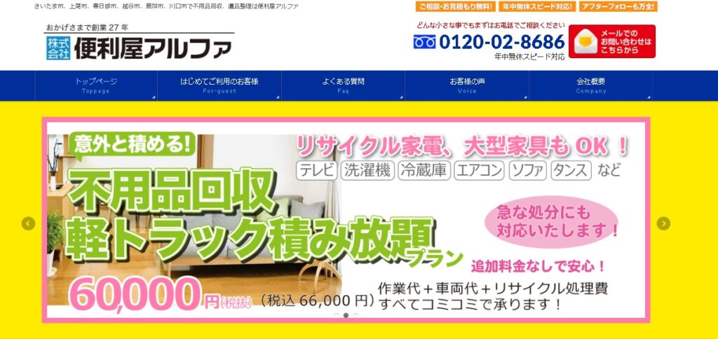 株式会社便利屋アルファは、ゴミ屋敷清掃をはじめ幅広い依頼に対応している便利屋タイプの片付け業者です。
