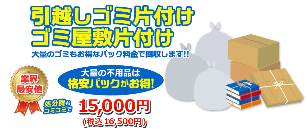 ただし、ゴミがひざ上以上に積み上がっている場合や、ハウスクリーニング・消臭などのオプション作業を追加する場合は、金額が上がることもあります。